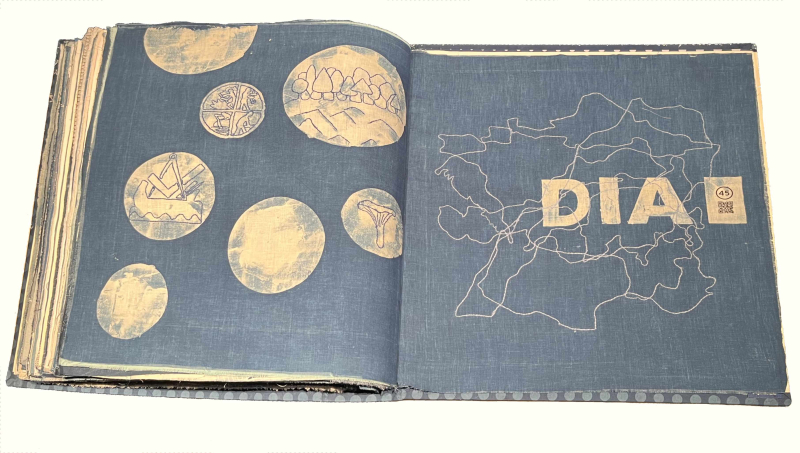 Das Projekt „Ein Heimatbuch“ hat die Zeugfärberei das vergangene Jahr beschäftigt: 45 Gestalter:innen haben je eine Doppelseite eines textilen Buches gestaltet – also in Blaudruck, Cyanotypie, Siebdruck. Gewebt, gestickt, genäht usf. – erlaubt waren alle textilen Techniken. Die inhaltliche Grundlage für die Gestaltungen waren Gespräche aus dem Freien Radio Freistadt, in denen Menschen von woanders her nach ihrer Geschichte, ihrer Heimat, ihrer neuen Heimat gefragt wurden. Also 45 Lebensgeschichten rund um Auswanderung, Flucht, Arbeit, Sprache, Liebe, Kultur, Kulinarik, die zur Gestaltung angeregt haben, oft unter Bezugnahme auf regionale Muster und Techniken, mal mit Text und narrativ, mit Bildern oder abstrakt. Immer gab es eine Auseinandersetzung mit der Geschichte des/der anderen, den Versuch, zu verstehen oder zumindest nachzuvollziehen, was diesen Menschen ausmacht. Die Gespräche sind über einen QR-Code auf der jeweiligen Seite dauerhaft aus dem Archiv der Freien Radios abrufbar zum Anhören.