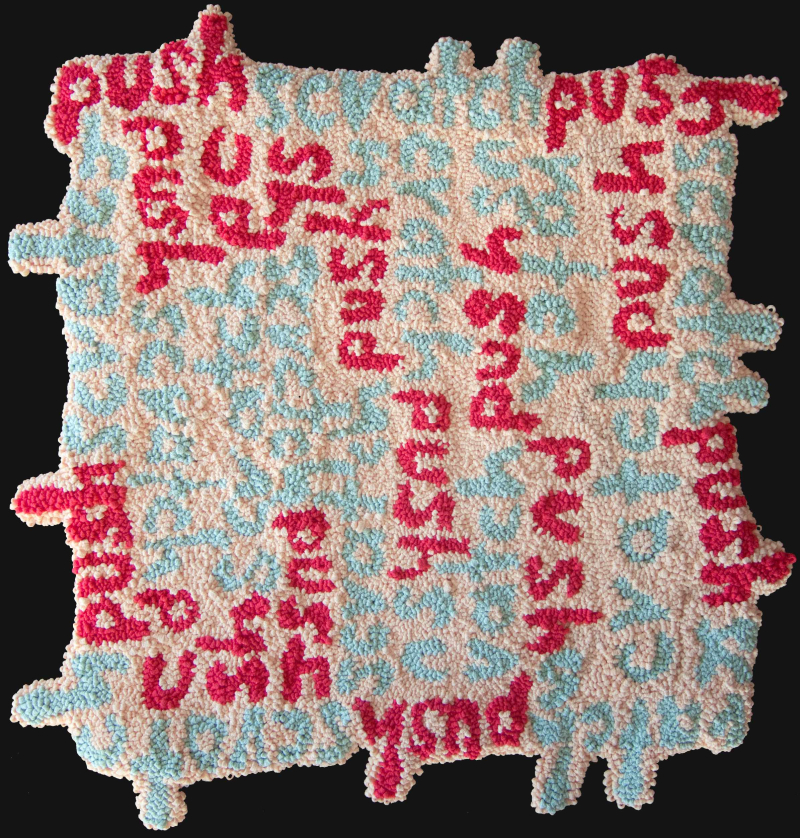 How To Make A Square ist eine Anleitung zum Tufting. Einerseits wird der Ablauf mit der sich die Nadel über den gespannten Stoff bewegt veranschaulicht, andererseits wird der Verlauf eine viereckige Fläche zu füllen nachgezeichnet.